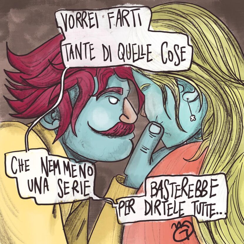 Il traid union degli altri vignettisti è il cinismo, tu invece non smetti di parlare di sentimenti e di amore, attraverso riflessioni intime e profonde, l’ultimo dei romantici. Non ci resta che sperare nel baffo per continuare a credere nel bello e nei legami veri?