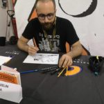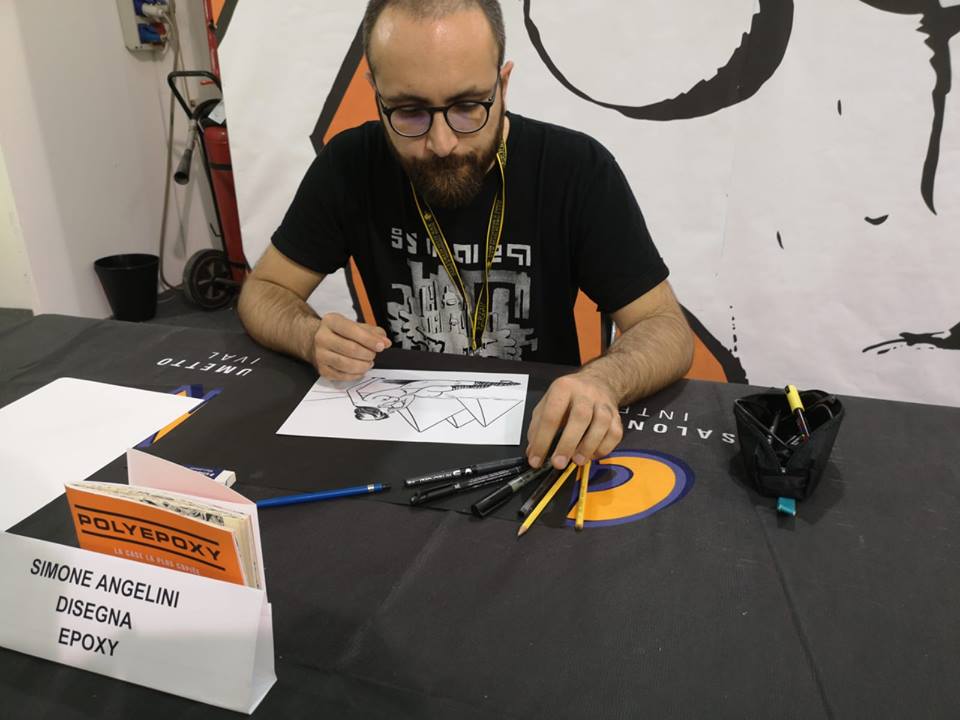 Ma torniamo al fumetto propriamente detto e alla caccia all’autografo. Tra le realtà emergenti del sottobosco culturale urbano di artisti che grazie al web hanno visto accrescere il loro nome e la viralità delle proprie opere c’è sicuramente Giulio Mosca, più noto come Il Baffo. Genovese, classe 1993, lo incontriamo proprio in fiera mentre è impegnato a riprodurre il suo alterego sulla prima pagina della sua ultima graphic novel “La fine del mondo di qualcun altro” a una fila di suoi giovani fan e approfittiamo per scambiare due chiacchiere con lui sulla sua arte e sul futuro di questa professione.
