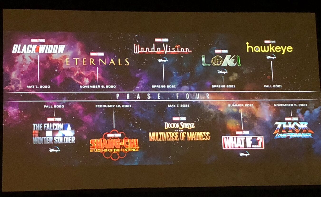 - 6 Novembre 2020 Eternals: nel cast spiccano i nomi di Angelina Jolie e Richard Madden. La pellicola sarà legata alle origini del personaggio di Thanos, con molti rumors che preannunciano la presenza di un giovane Thanos in flashback o con simili espedienti.